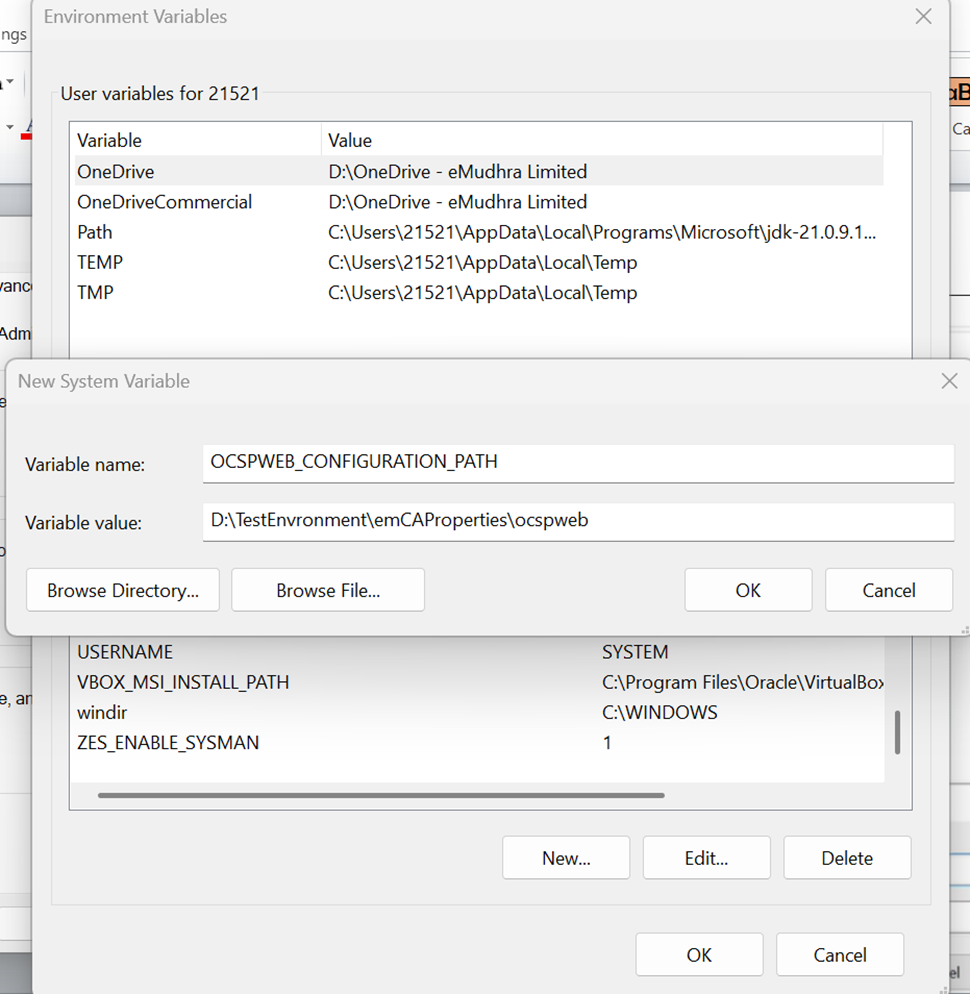 Variable value: E:\OCSP\OCSPProperties\emocsp