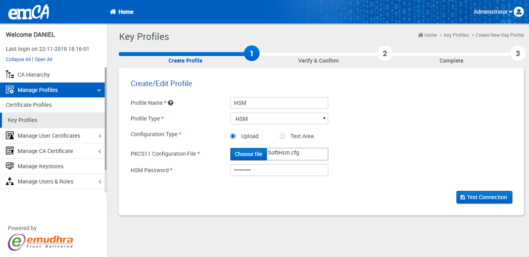 On the Key Profile page, click the "New Profile" button as shown in the figure below.