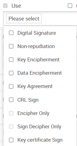 **Key Usage:** From the **Key Usage** dropdown menu, select the appropriate key usage options.