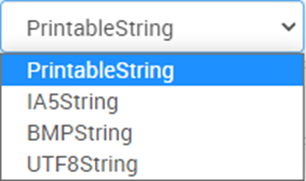 In most cases, PrintableString or UTF8String are used. For more information, refer to RFC 5280.