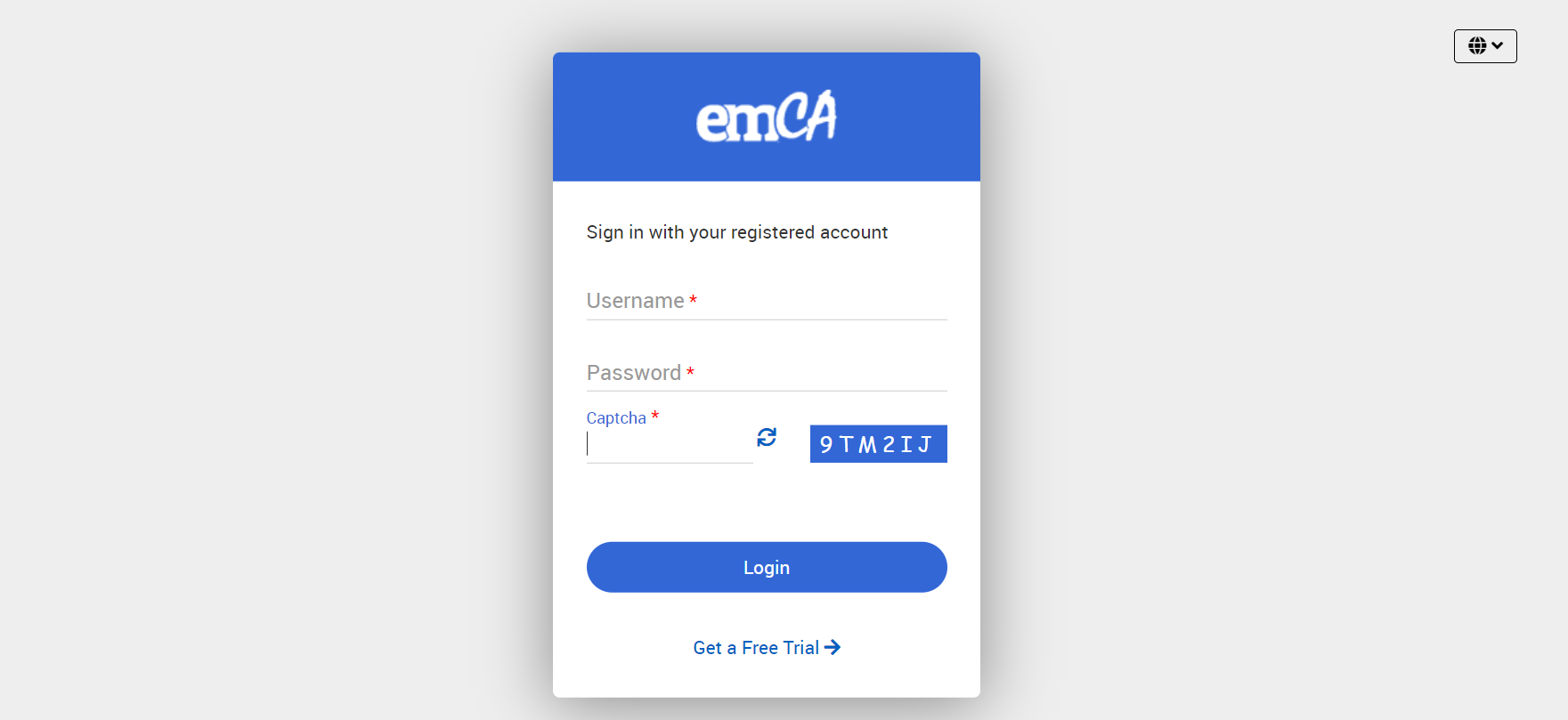 To access emCA, open any browser and enter the emCA URL. This will display the login page, which looks like the image shown below.