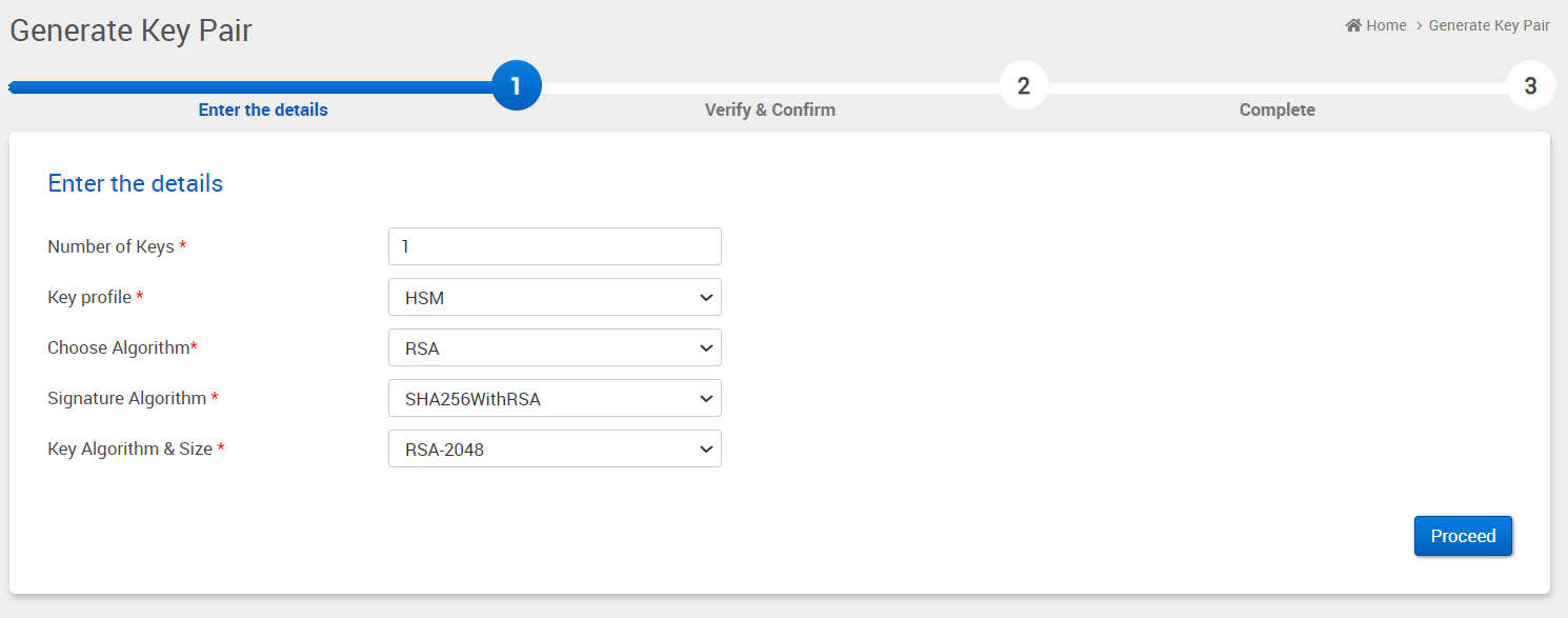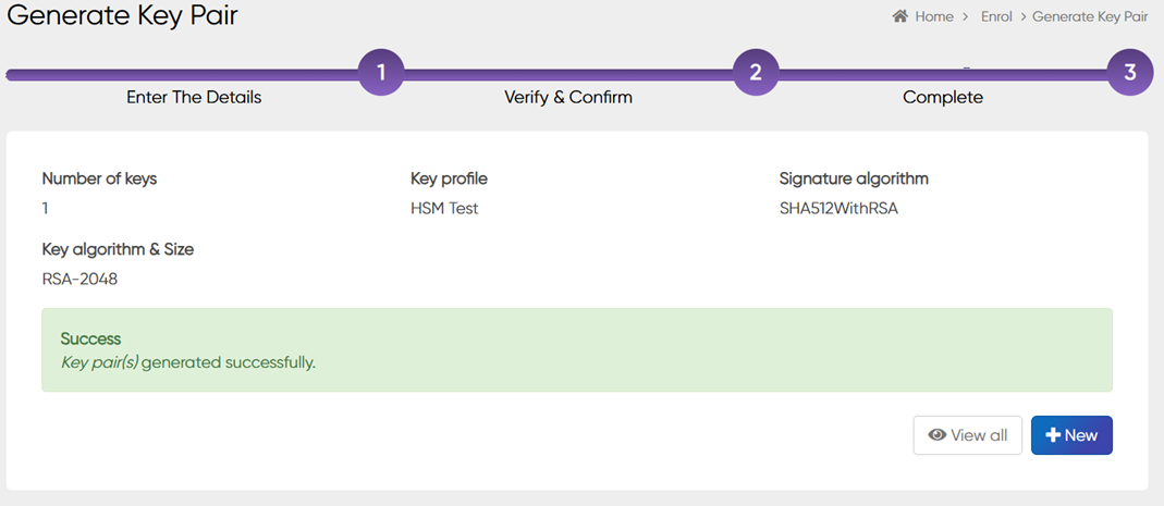Click on "Generate Key Pair(s)" to generate the keys. After the successful generation of the key pair, the success message as shown below.