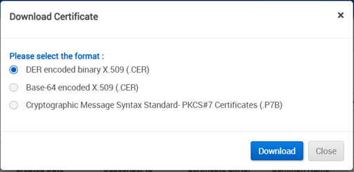 Select the export format of your choice and click Download to start the download of the user certificate. The user certificate will be downloaded to the standard download location of your OS.
