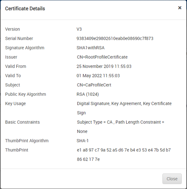 Click on <img src="https://2804668976-files.gitbook.io/~/files/v0/b/gitbook-x-prod.appspot.com/o/spaces%2FOwstGDJbR4yGRTr2aEFp%2Fuploads%2FiRvLDb5BhQAmbOUTCfiw%2Fimage.png?alt=media&#x26;token=5cf136a1-66c6-4372-978c-73f934767c62" alt="" data-size="line">to view the CA certificate details:
