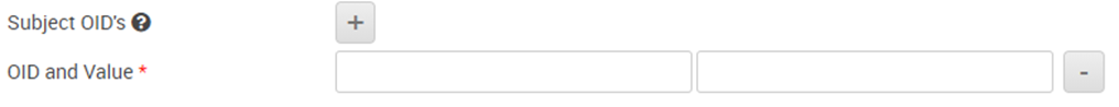 Every added DN attribute is marked as required. Remove DN attributes by clicking <img src="https://2804668976-files.gitbook.io/~/files/v0/b/gitbook-x-prod.appspot.com/o/spaces%2FOwstGDJbR4yGRTr2aEFp%2Fuploads%2F8Y27McXSadH9ksSBBsQv%2Fimage.png?alt=media&#x26;token=4fe5a9d9-703d-4ed4-aef4-545658053e6a" alt="" data-size="line">next to them. Click <img src="https://2804668976-files.gitbook.io/~/files/v0/b/gitbook-x-prod.appspot.com/o/spaces%2FOwstGDJbR4yGRTr2aEFp%2Fuploads%2FfXwonbjI88utP2E6zvaL%2Fimage.png?alt=media&#x26;token=7de7205d-d6dc-4ad0-9bb3-40f6a68f83be" alt="" data-size="line">next to Subject OID’s to add custom DN attributes.
