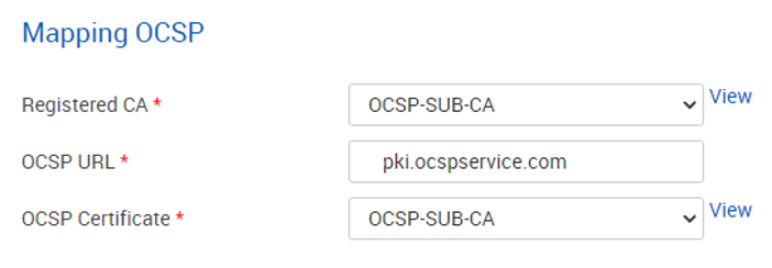 After generation, OCSP certificates must be manually mapped to the corresponding CA using this UI.