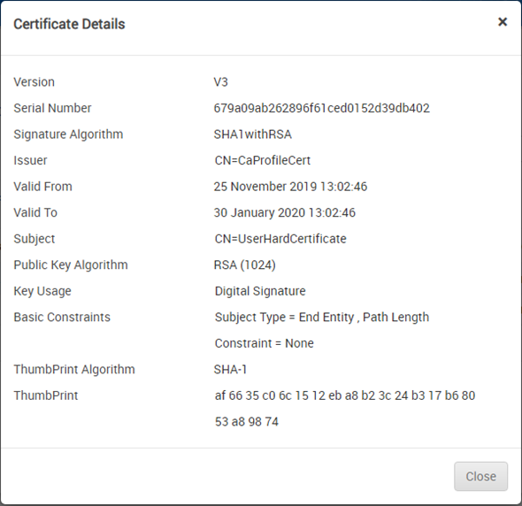 Click on <img src="https://2804668976-files.gitbook.io/~/files/v0/b/gitbook-x-prod.appspot.com/o/spaces%2FOwstGDJbR4yGRTr2aEFp%2Fuploads%2F7Dxn6Lv2TmOad8cOmy2k%2Fimage.png?alt=media&#x26;token=dc779b12-47bb-44a5-a23a-e8a335c0a135" alt="" data-size="line"> to view the user certificate details: