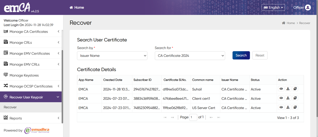 Click on <img src="https://2804668976-files.gitbook.io/~/files/v0/b/gitbook-x-prod.appspot.com/o/spaces%2FOwstGDJbR4yGRTr2aEFp%2Fuploads%2FZYoNDdKrThvFTW4cIBjJ%2Fimage.png?alt=media&#x26;token=dc91e16b-257d-4205-b8aa-fe7dca537b93" alt="" data-size="line"> to view the user certificate details: