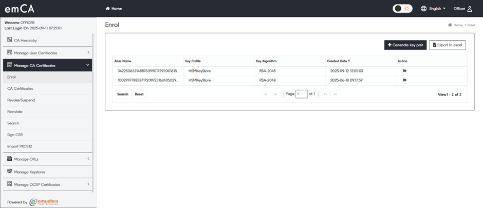 ## Officer Generating Key Pair